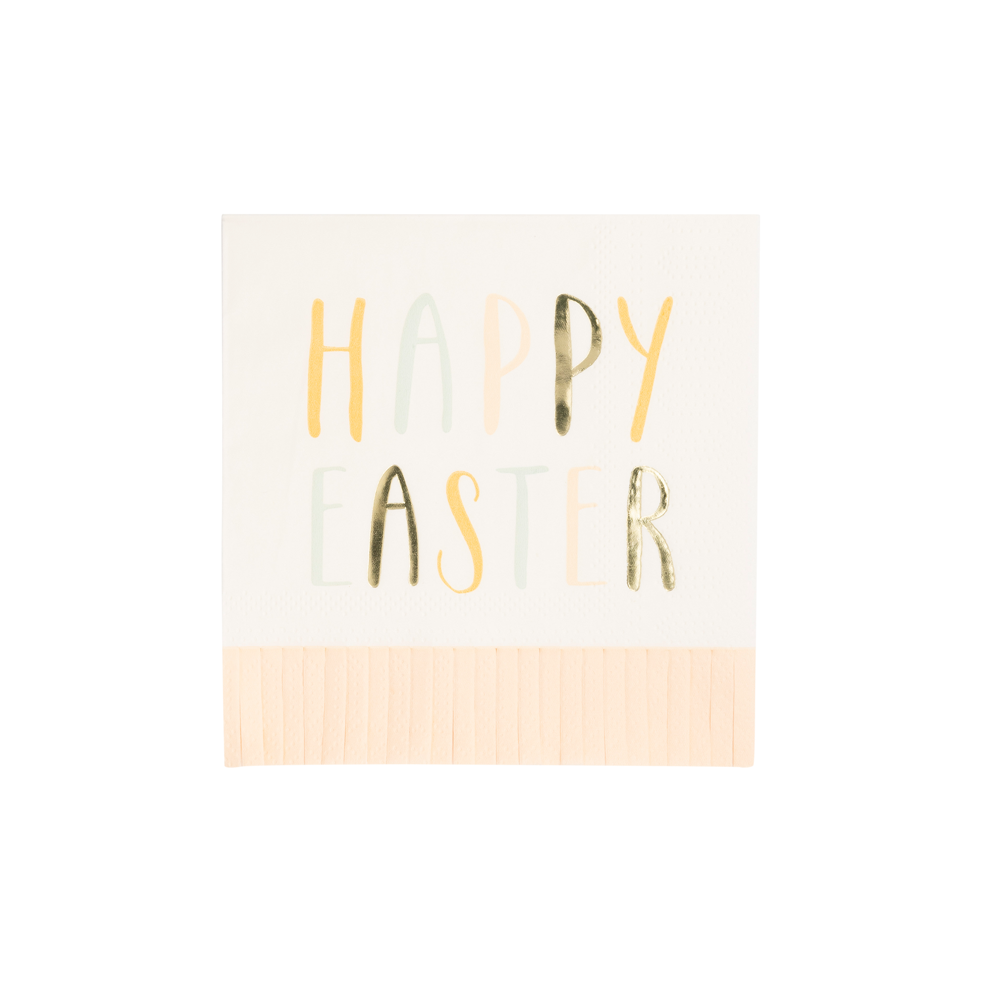 Add a touch of fun and whimsy to your Easter table with this Happy Easter napkin! Featuring playful fringe and pastel colors, this napkin will add a playful touch to your festive celebrations. Get ready to make your guests happy with this sweet addition to your decor!