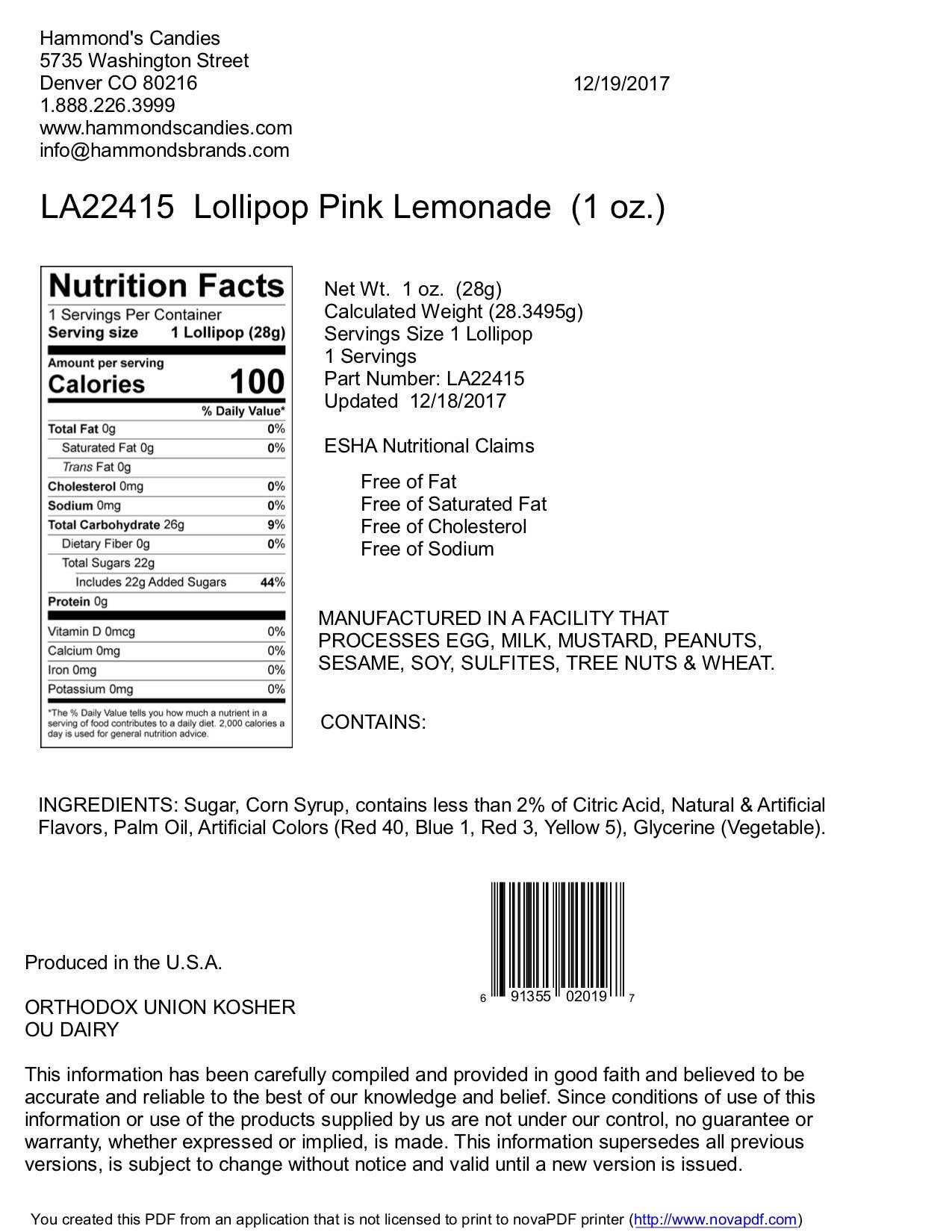 * NOTE: Hammond's lollipops are handmade. Size and color may vary. *