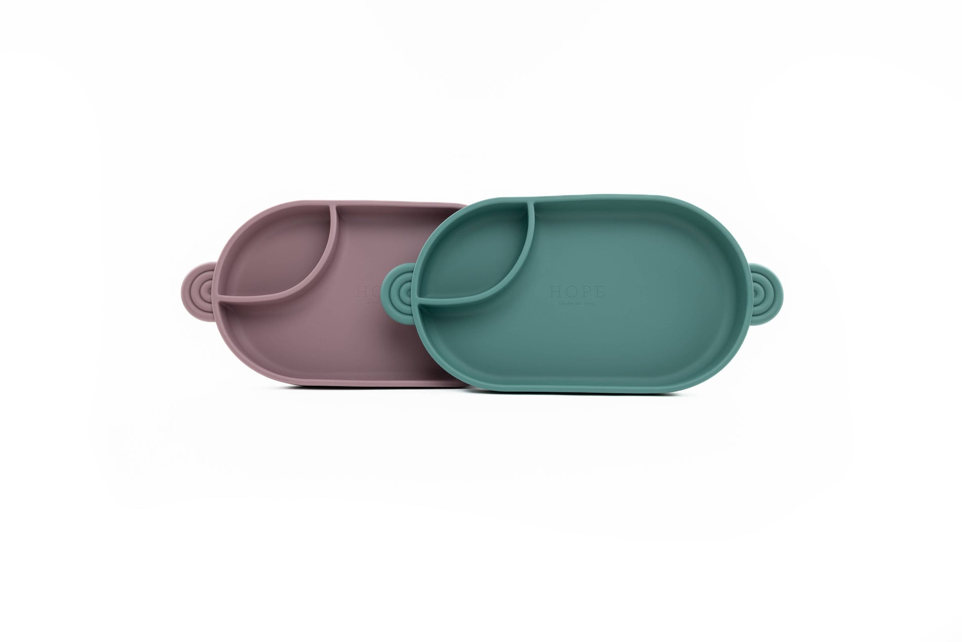 Made of food grade silicone and toxin free. Safe for all ages. Size 19”x 9.5” with a 2” depth. Cleans easily in the dishwasher.
